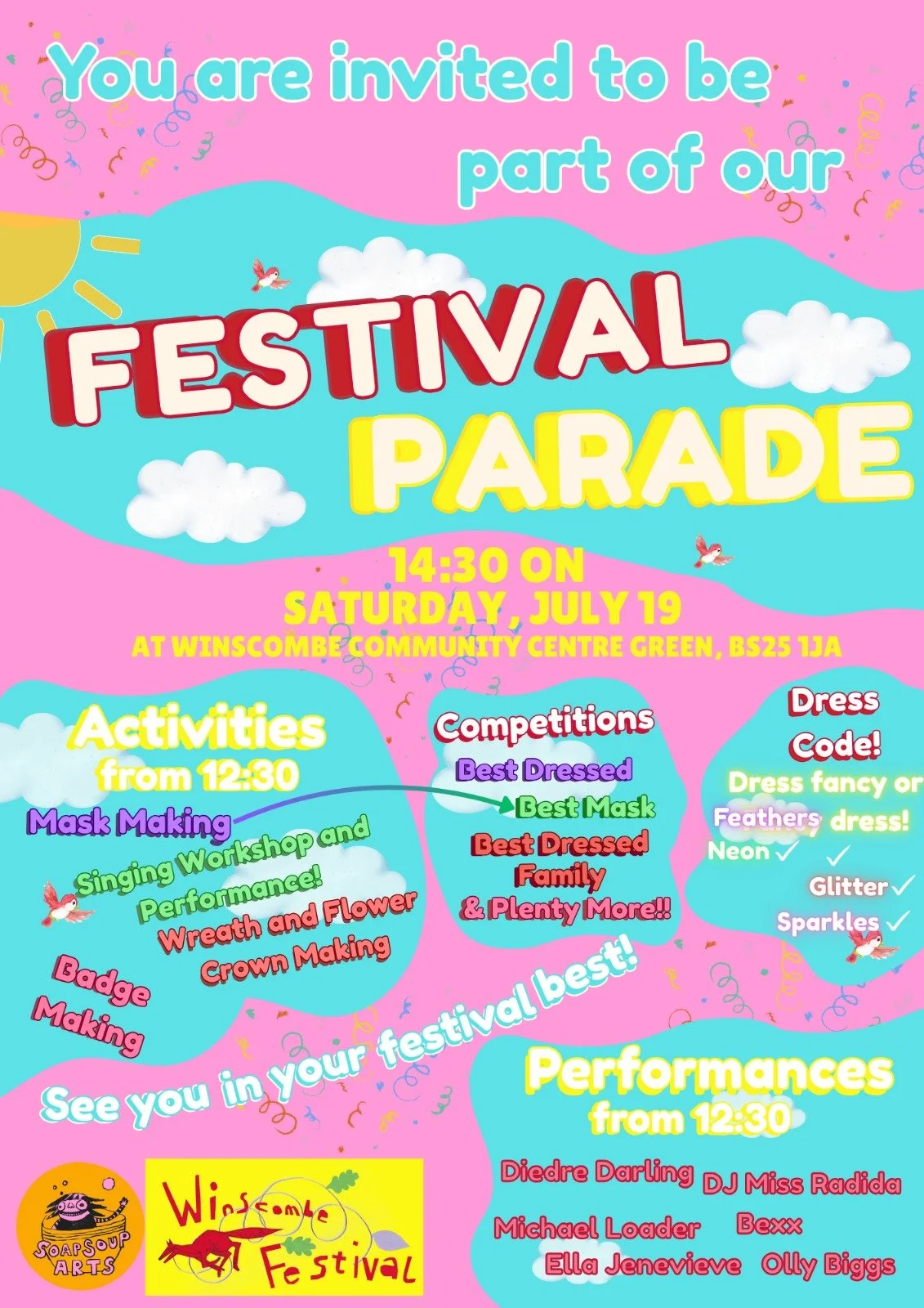 Next year we would like to invite local professional theatre companies, local musical talent and local food businesses to come together to celebrate the talents of the region and make Winscombe a destination for arts, culture and community spirit.